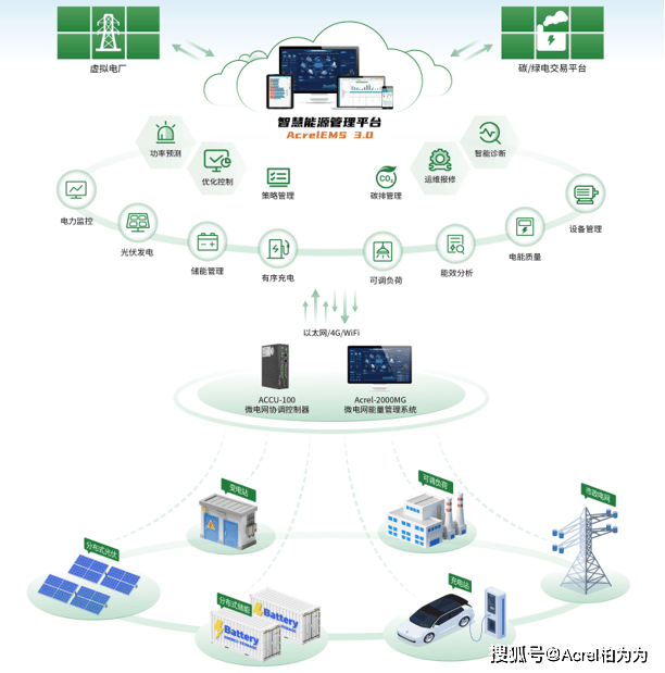 虚拟电厂聚合:整合园区分布式电源、储能设备、柔性负荷,参与电力市场交易,实现绿电供需精准匹配;