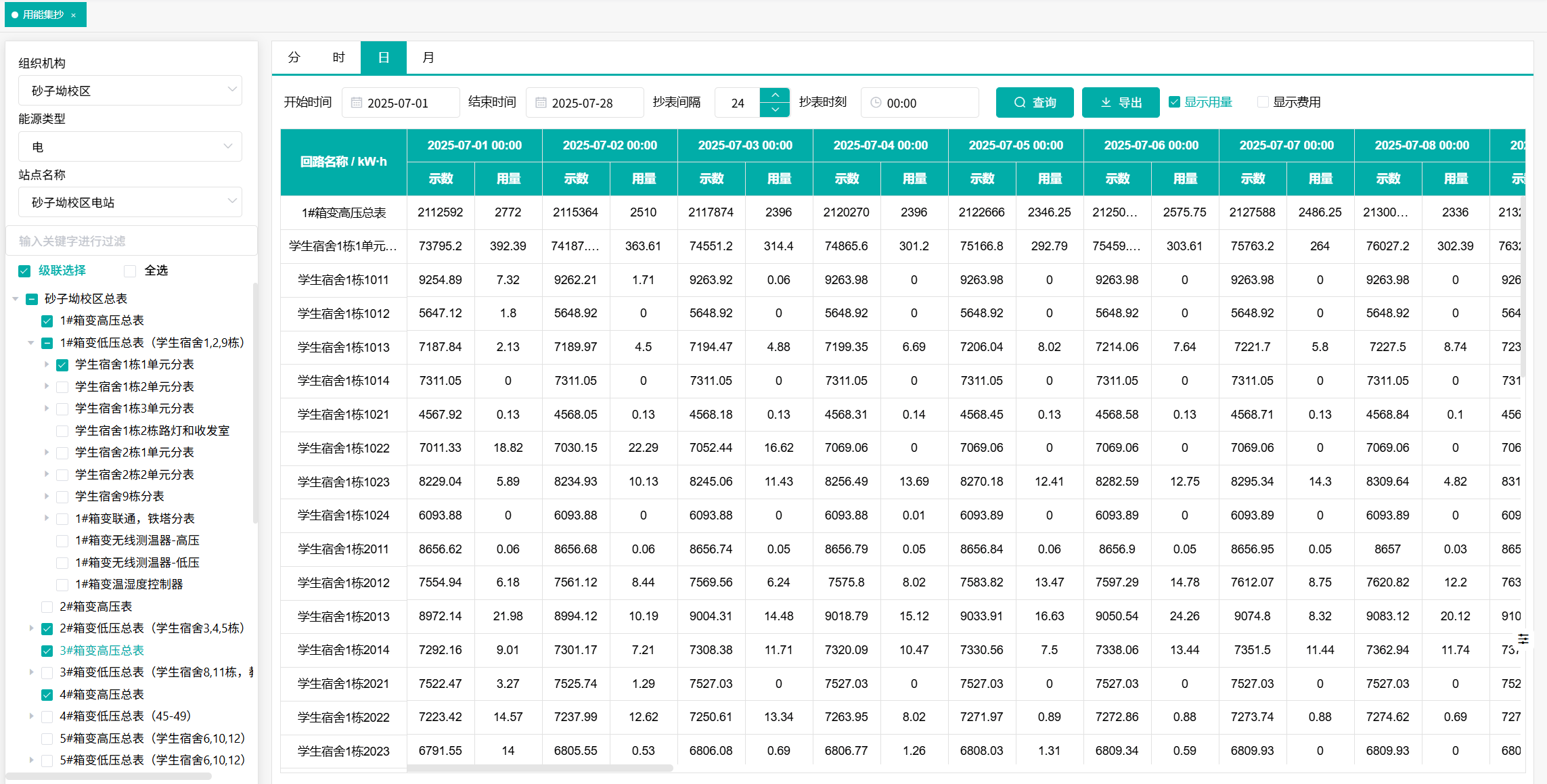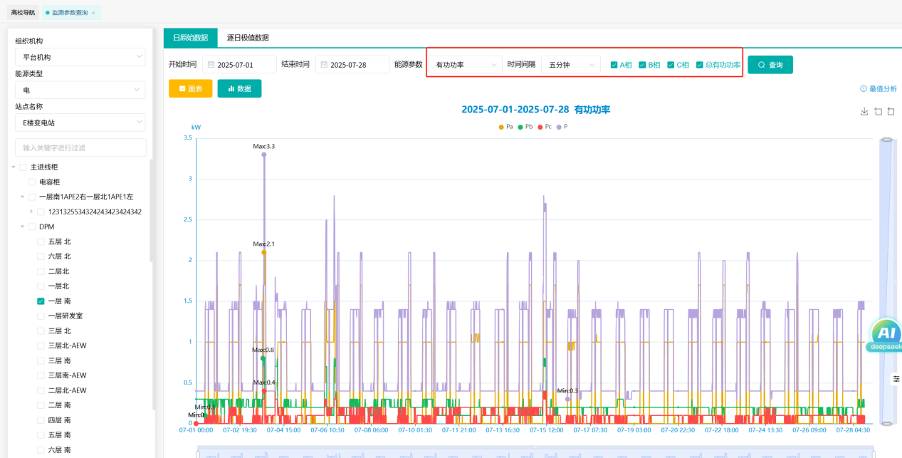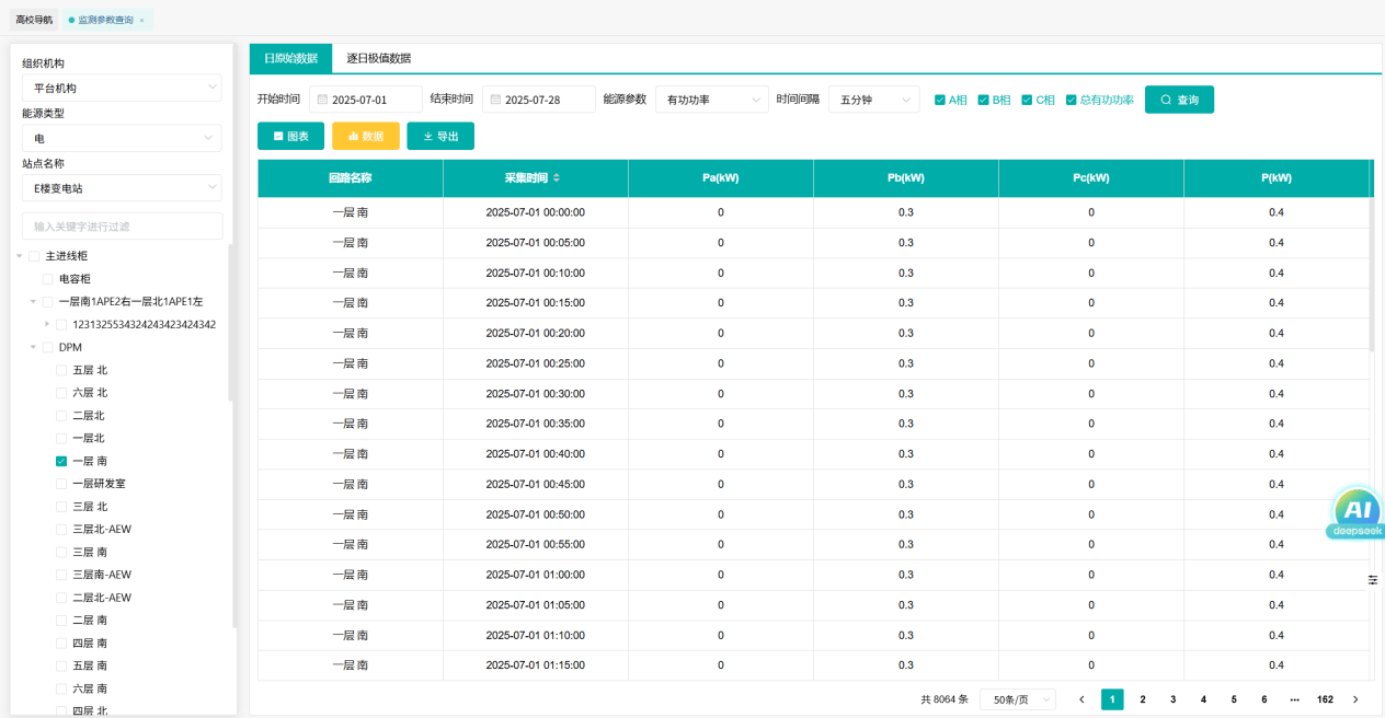 灵活响应教学节奏。支持按课表时段调取数据,查看教室空调、食堂午间用电高峰;也可按月统计寒暑假实验室待机能耗,准确识别“隐形”浪费。